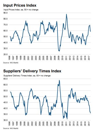 The rising index reflected a large increase in new orders as well as a lengthening in supplier delivery times. German manufacturers experienced the fastest growth in new orders since March 2011, marking the sixth acceleration in seven months. Purchasing activity also rose sharply in June, placing higher demands on suppliers and leading to the greatest lengthening of delivery times since April 2011.